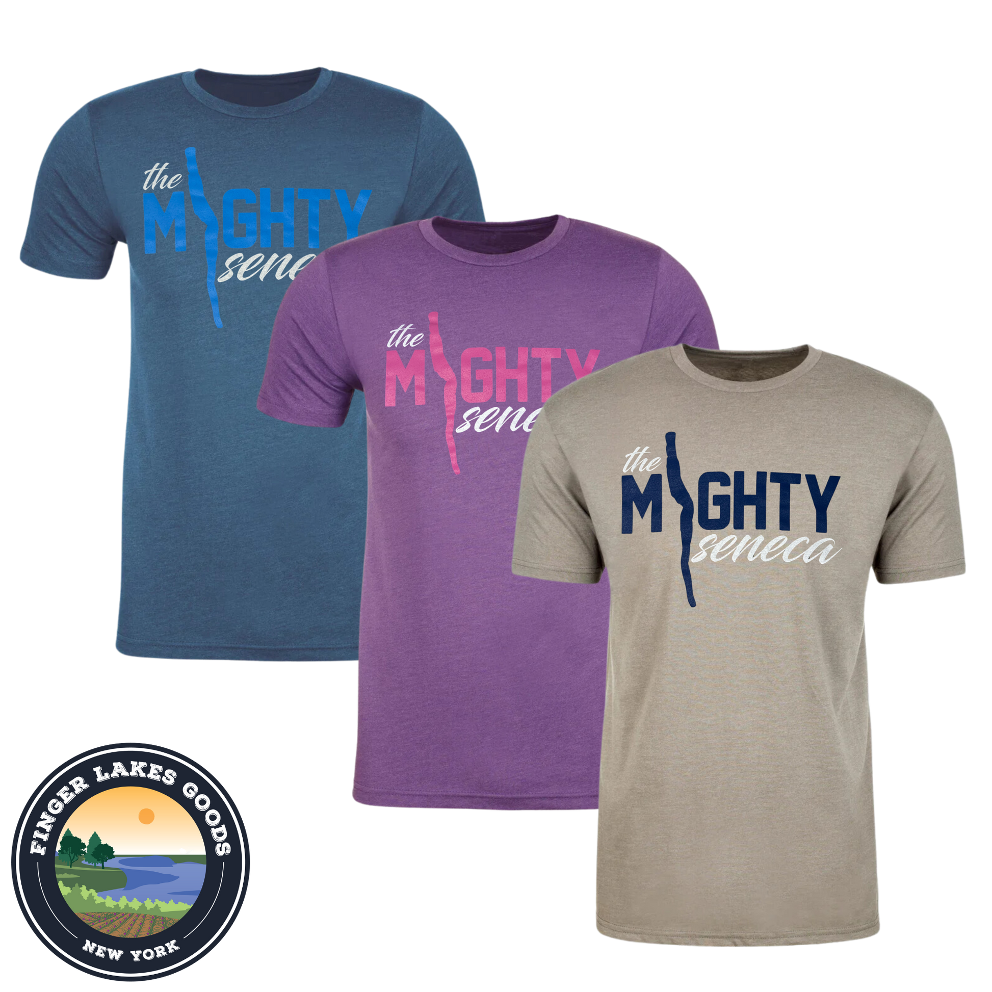 Seneca Lake is the biggest and deepest lake in the Finger Lakes. These pre-shrunk 60/40 Cotton-Poly Blend t-shirts are soft, durable and comfy.