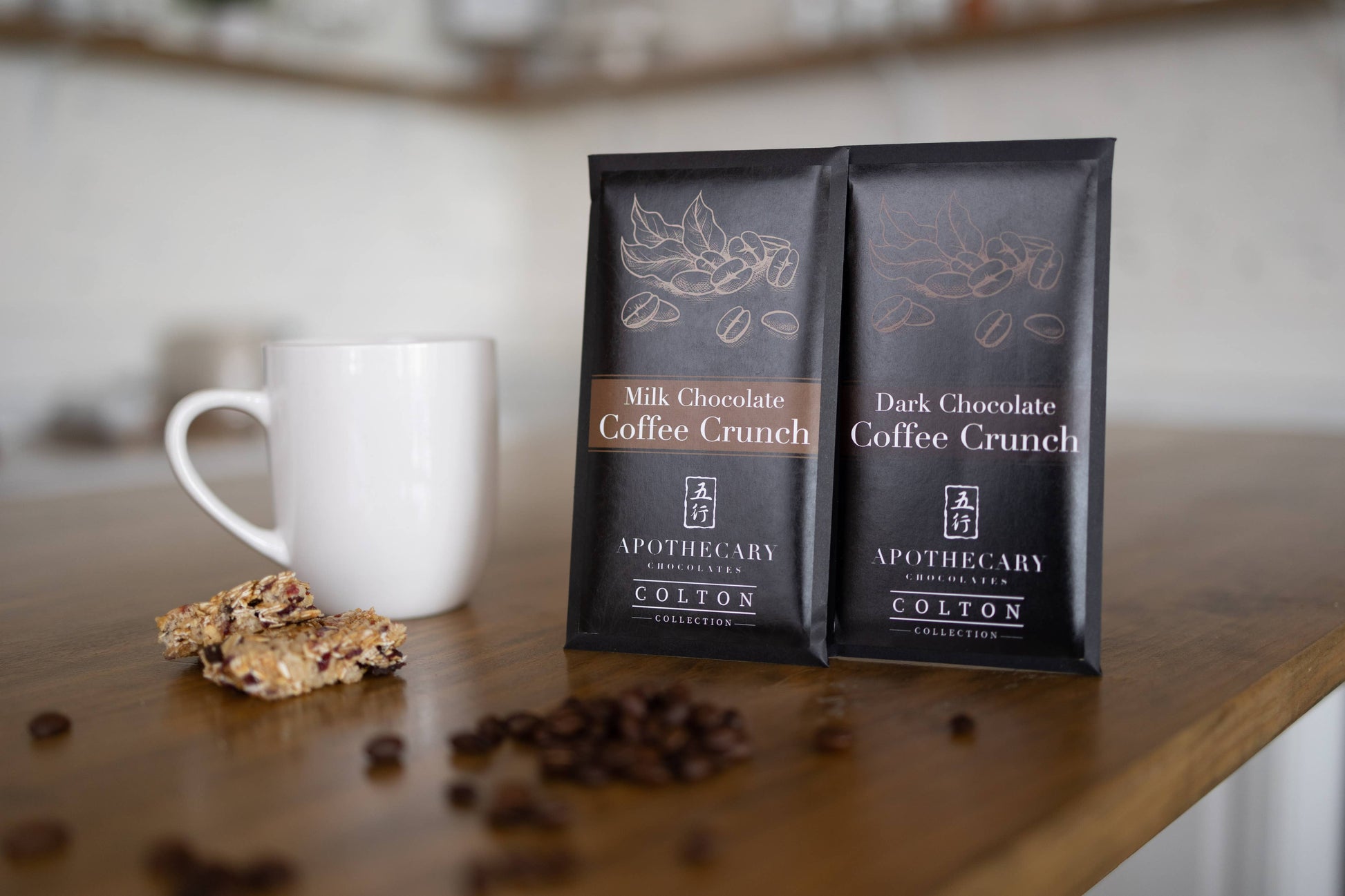 This enlivening bar utilizes a “seafoam” process to turn coffee from the St. Lawrence Valley Roaster’s into a crunch that blends effortlessly with our rich dark chocolate.