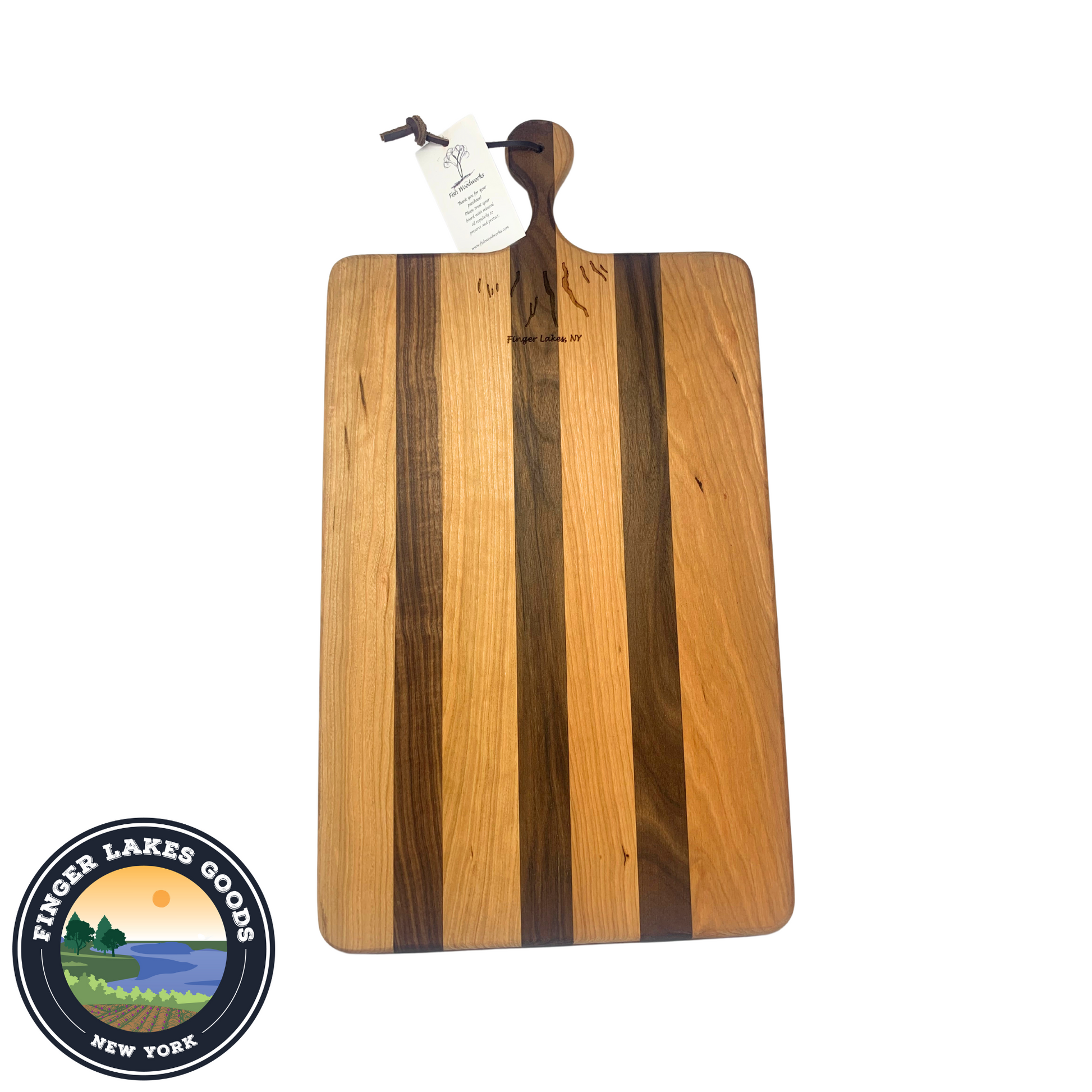 This handcrafted cutting board features a beautiful rendering of the Finger Lakes. Extremely high quality and simply beautiful.