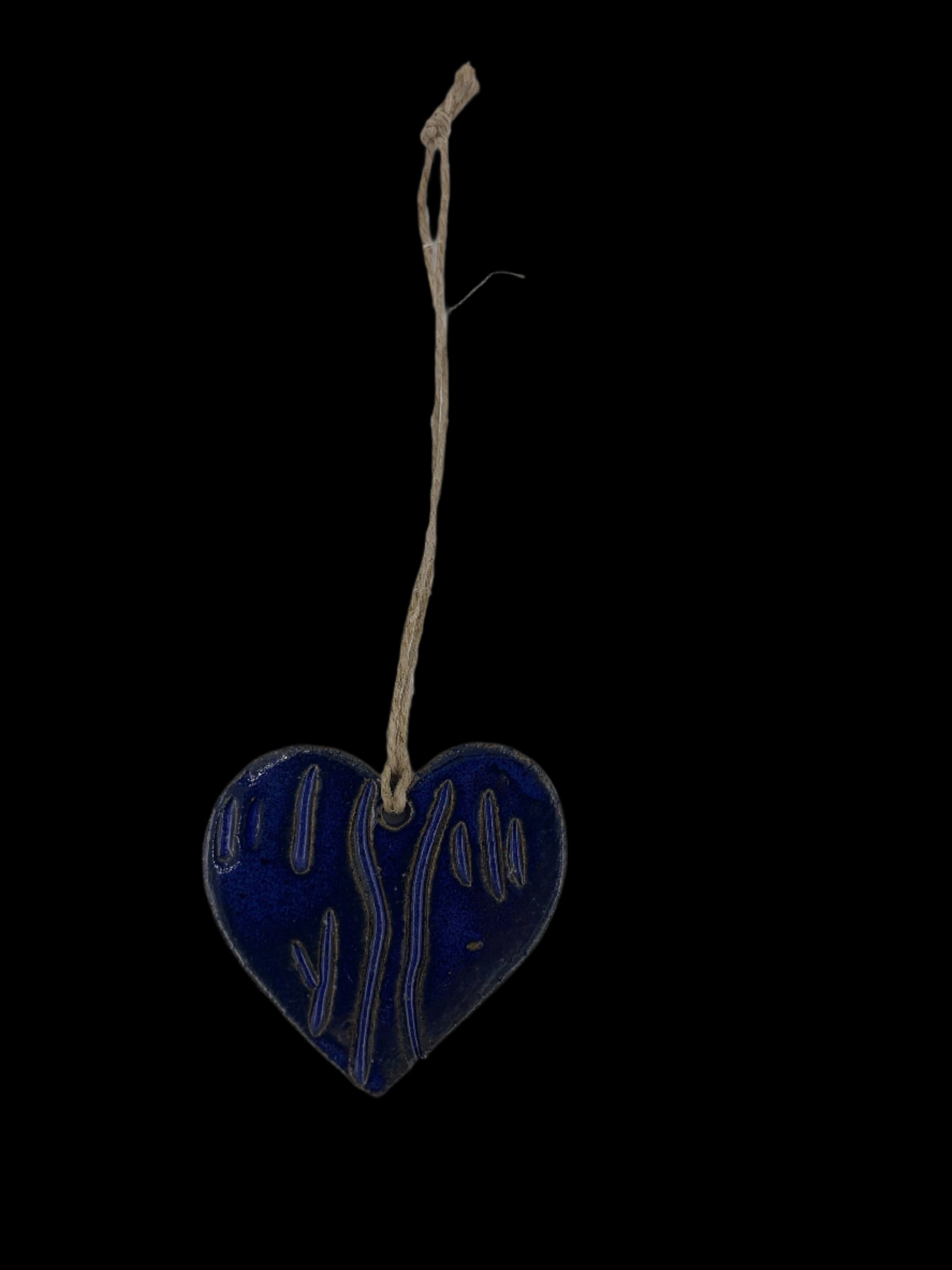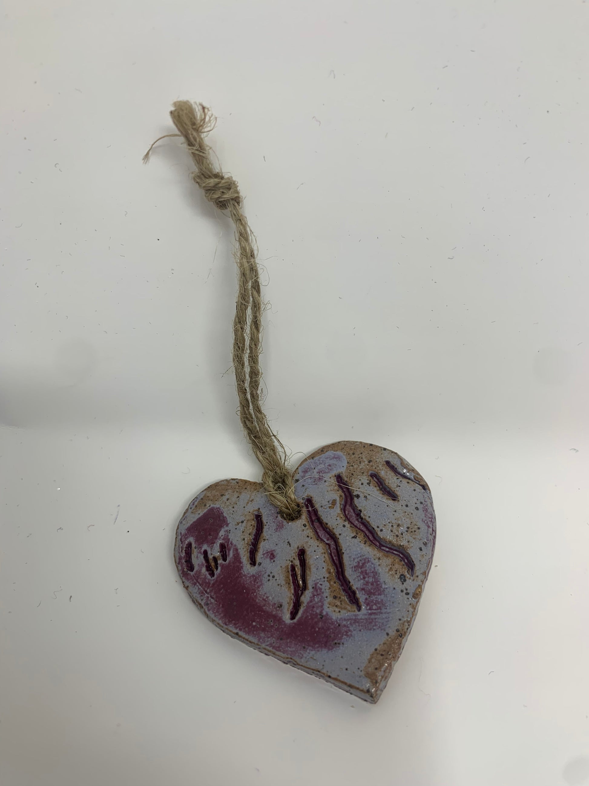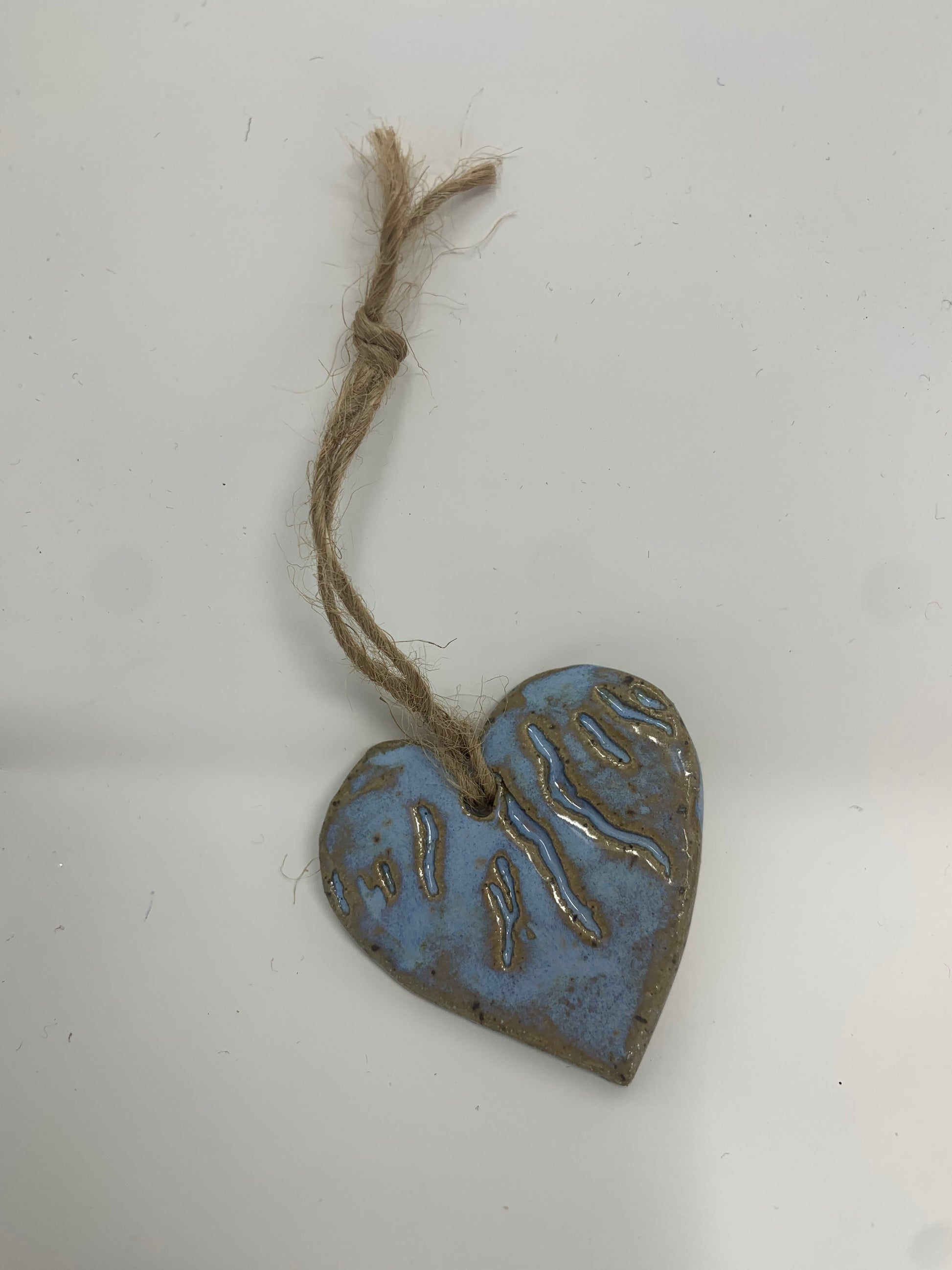 Beautiful handmade ornaments made by local potter Angela Zimmers-Cartwright. These ornaments are all custom and measured about 2”x2” and make for either a beautiful tree ornament or put them on a wine bottle.