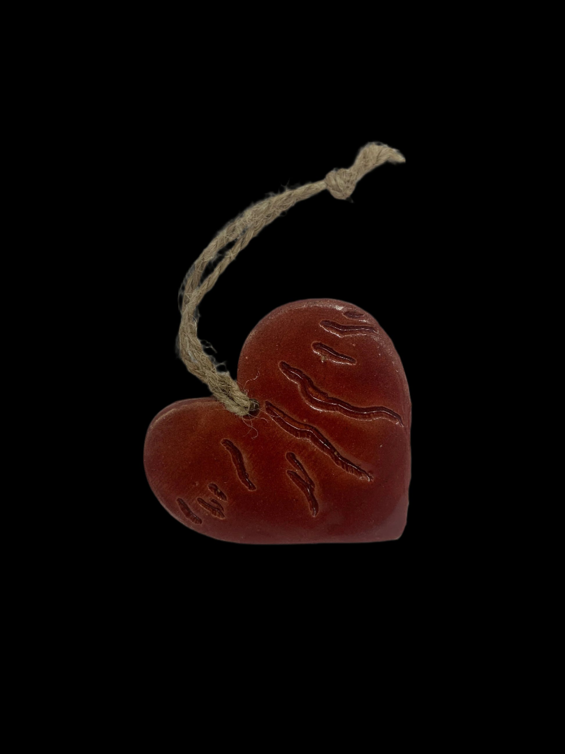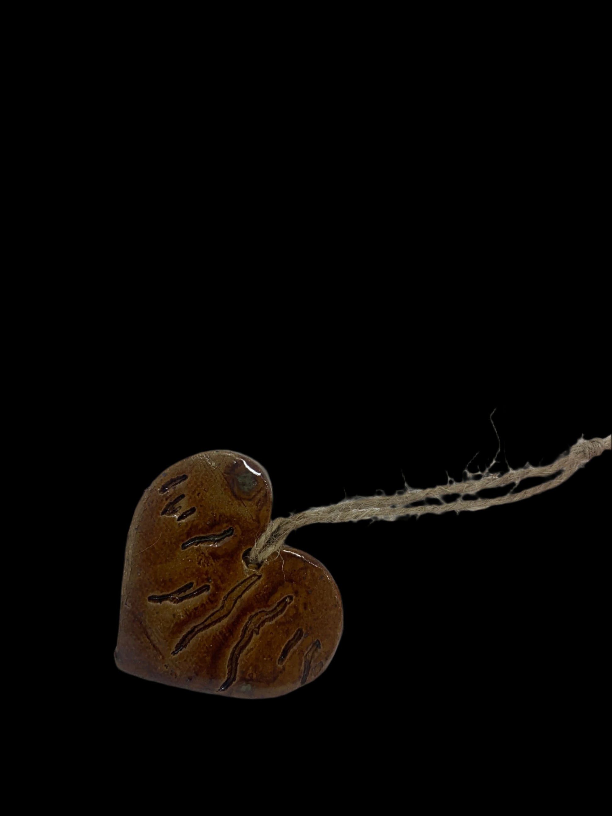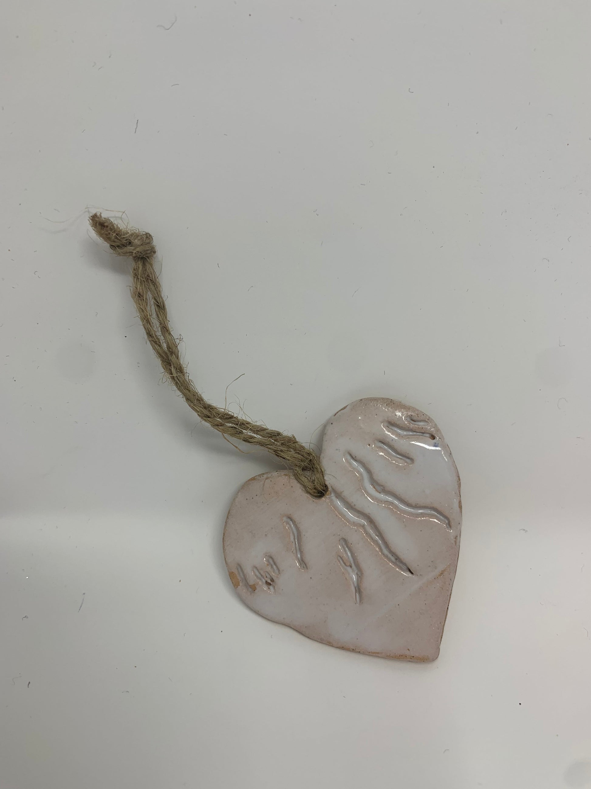 Beautiful handmade ornaments made by local potter Angela Zimmers-Cartwright. These ornaments are all custom and measured about 2”x2” and make for either a beautiful tree ornament or put them on a wine bottle.