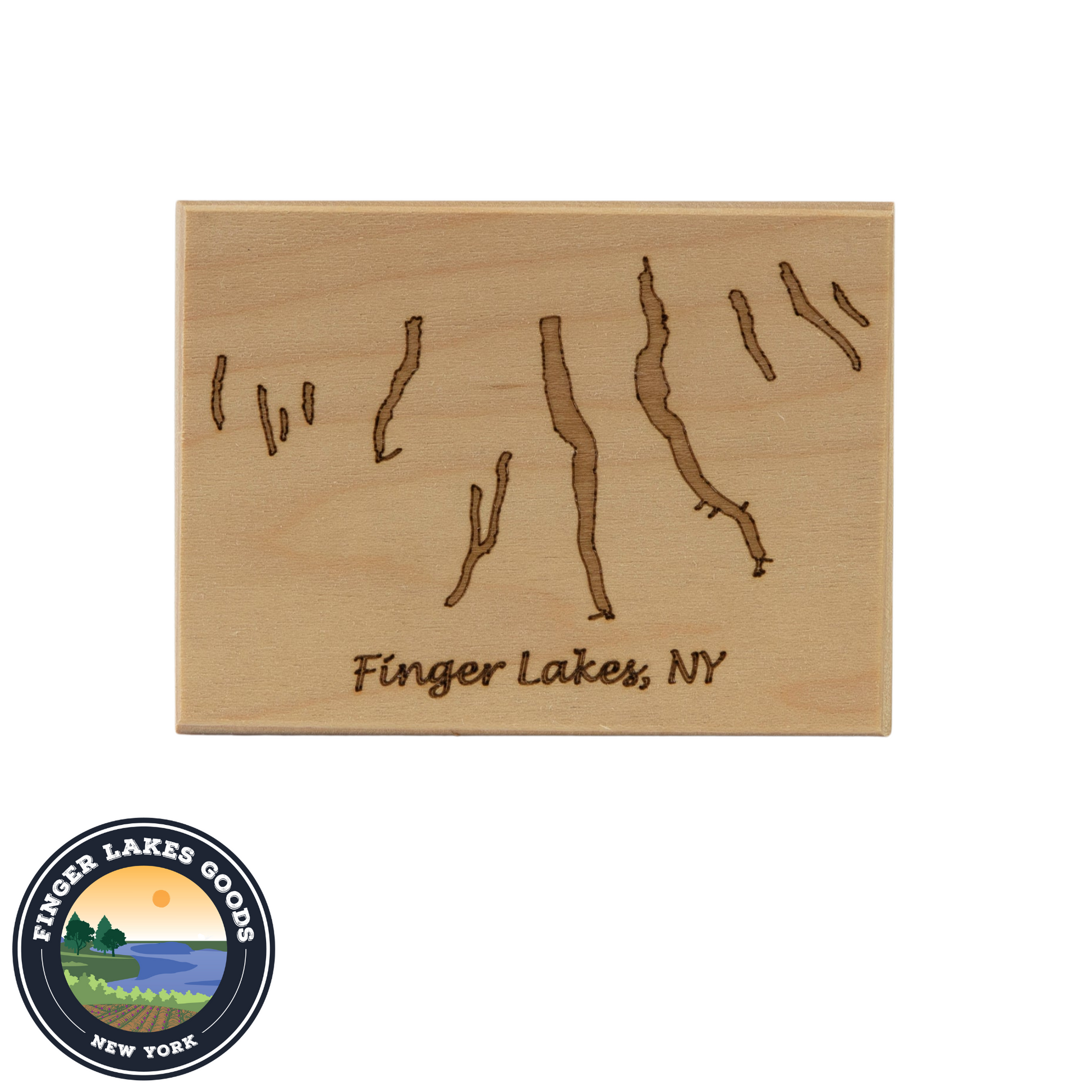 This handcrafted magnet features a beautifully carved rendition of the Finger Lakes. A great keepsake!