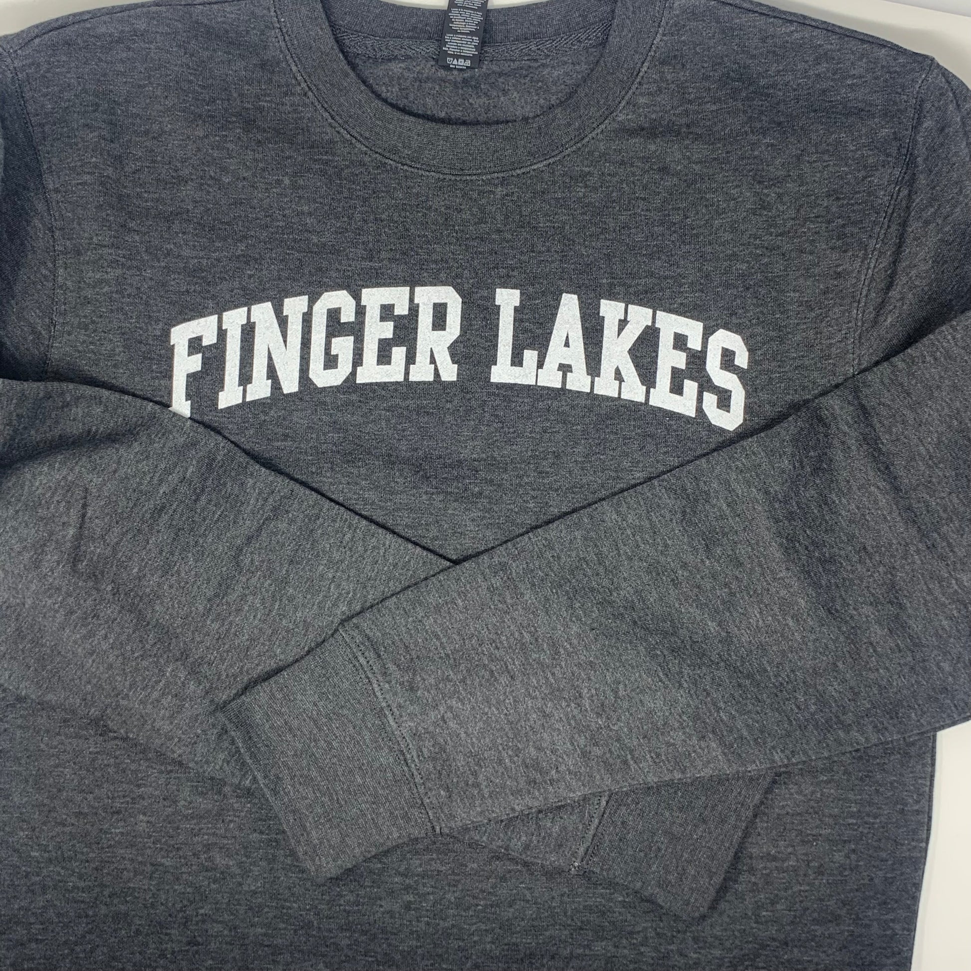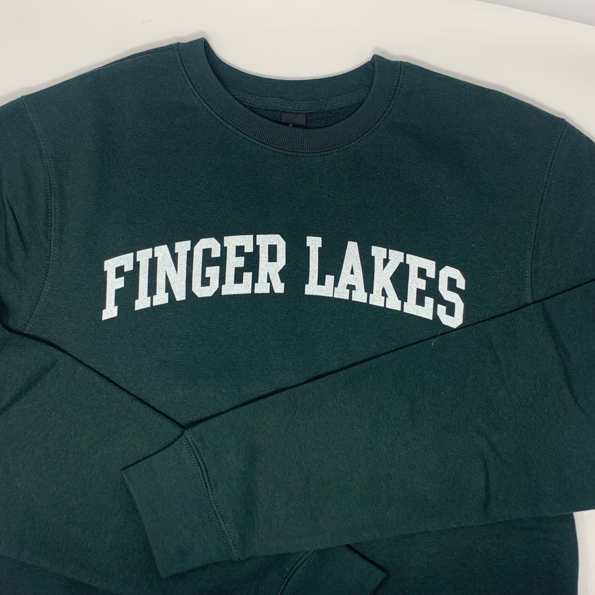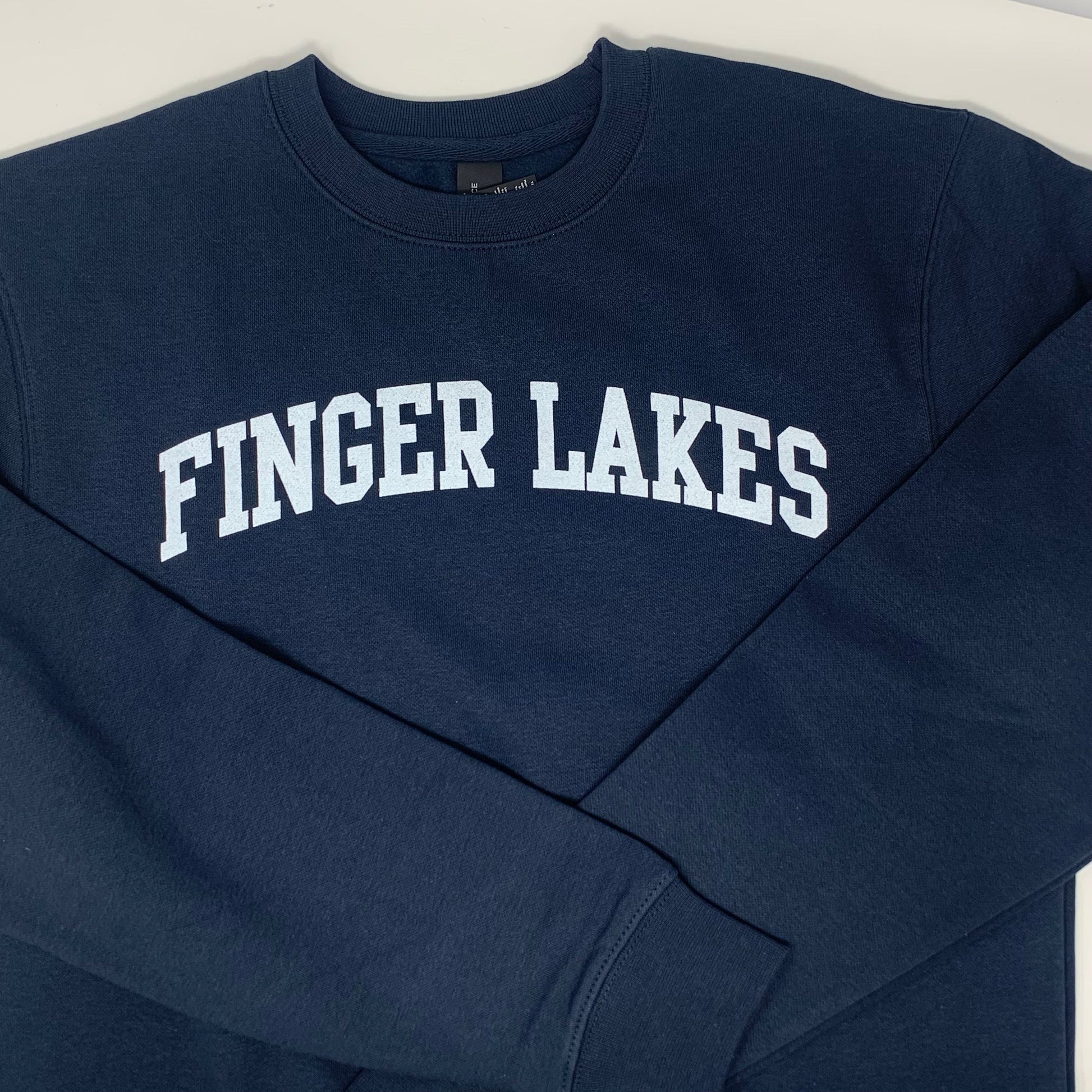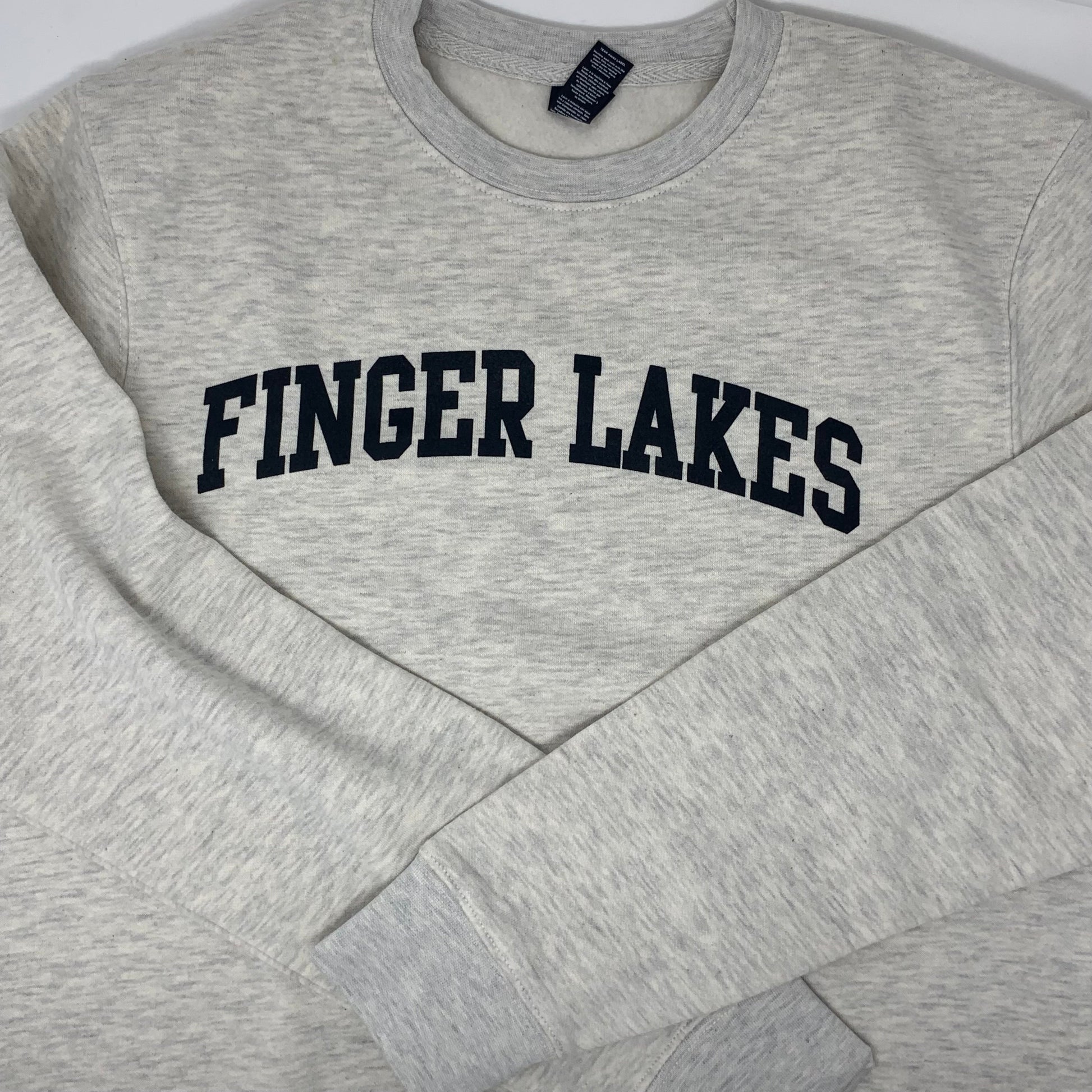 These Finger Lakes Varsity Crews are great for staying warm and cozy during the winter months, although we recommend using yours to cozy up during a Seneca Lake Sail. Printed in Rochester on Gildan V.I.T. Fleece. 60% Cotton 40% Polyester.