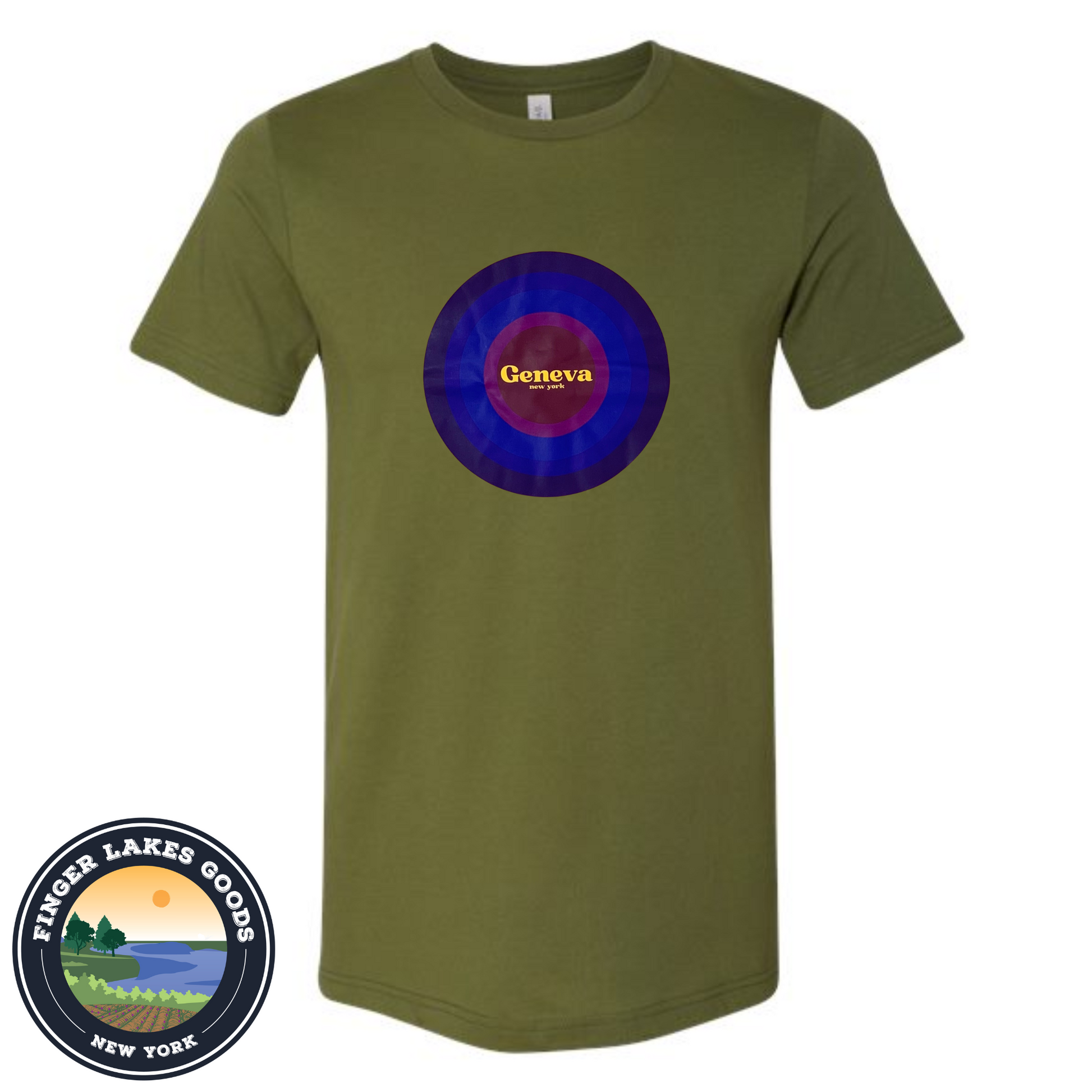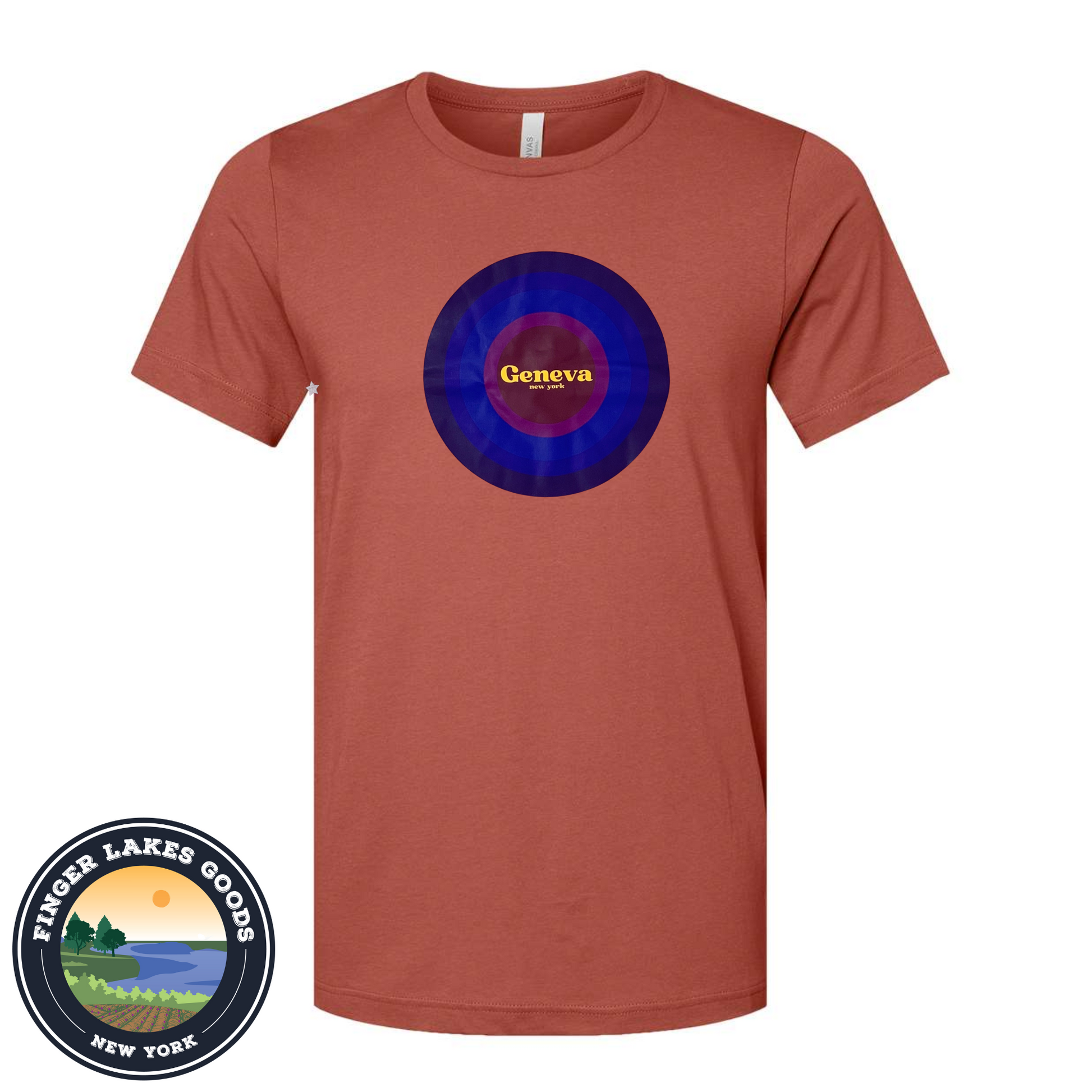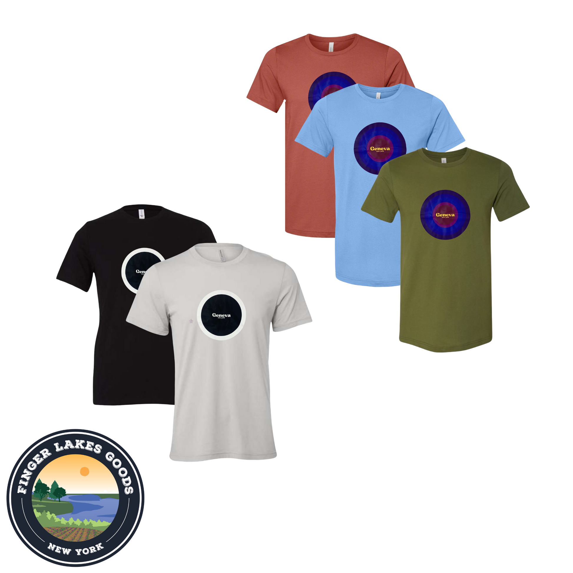 Celebrate our hometown, Geneva, New York. We designed these ourselves, and are as proud of the design as we are of Geneva. 100% Cotton, so it'll shrink a little.