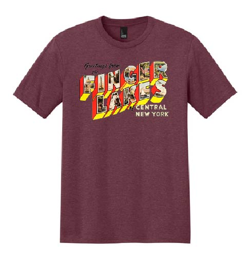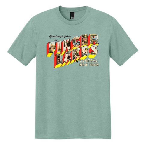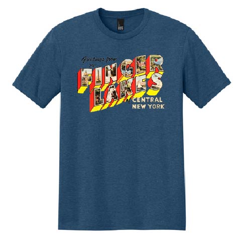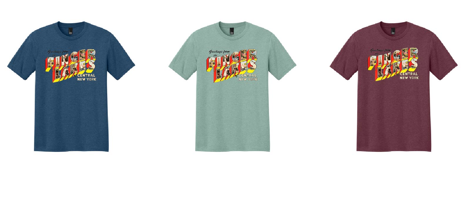 Our Greetings from The Finger Lakes t-shirts are soft, supple and pre-shrunk making for a perfect fit. The District unisex tri-blend will have you comfortably showing off the Finger Lakes.