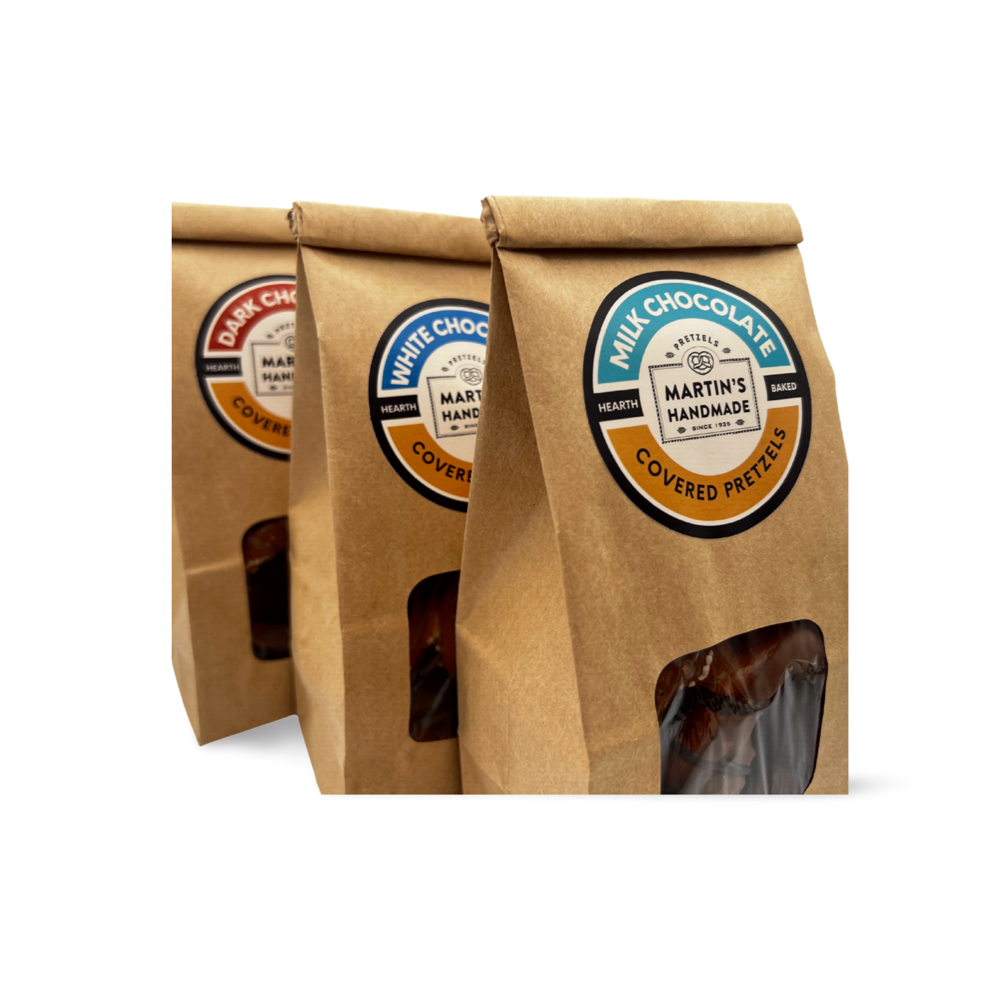 Martin's Handmade Pretzels take a sweet turn, hand-dipped in high-quality chocolate. With a gourmet drizzle for an extra touch that demonstrates this unique handmade product.