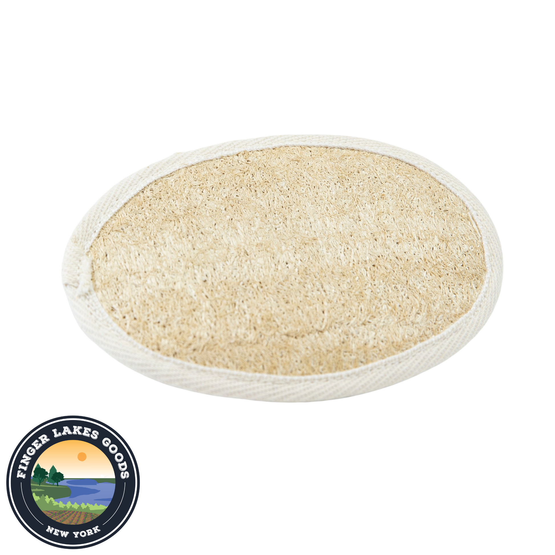 A staple for the bath or shower, this oval loofah pad is perfect for scrubbing the fact or body, thoroughly cleaning and exfoliating as it's used. It's supported by a nice, cotton waffle-pattern backing. Elastic strap attached to secure to hand while cleaning