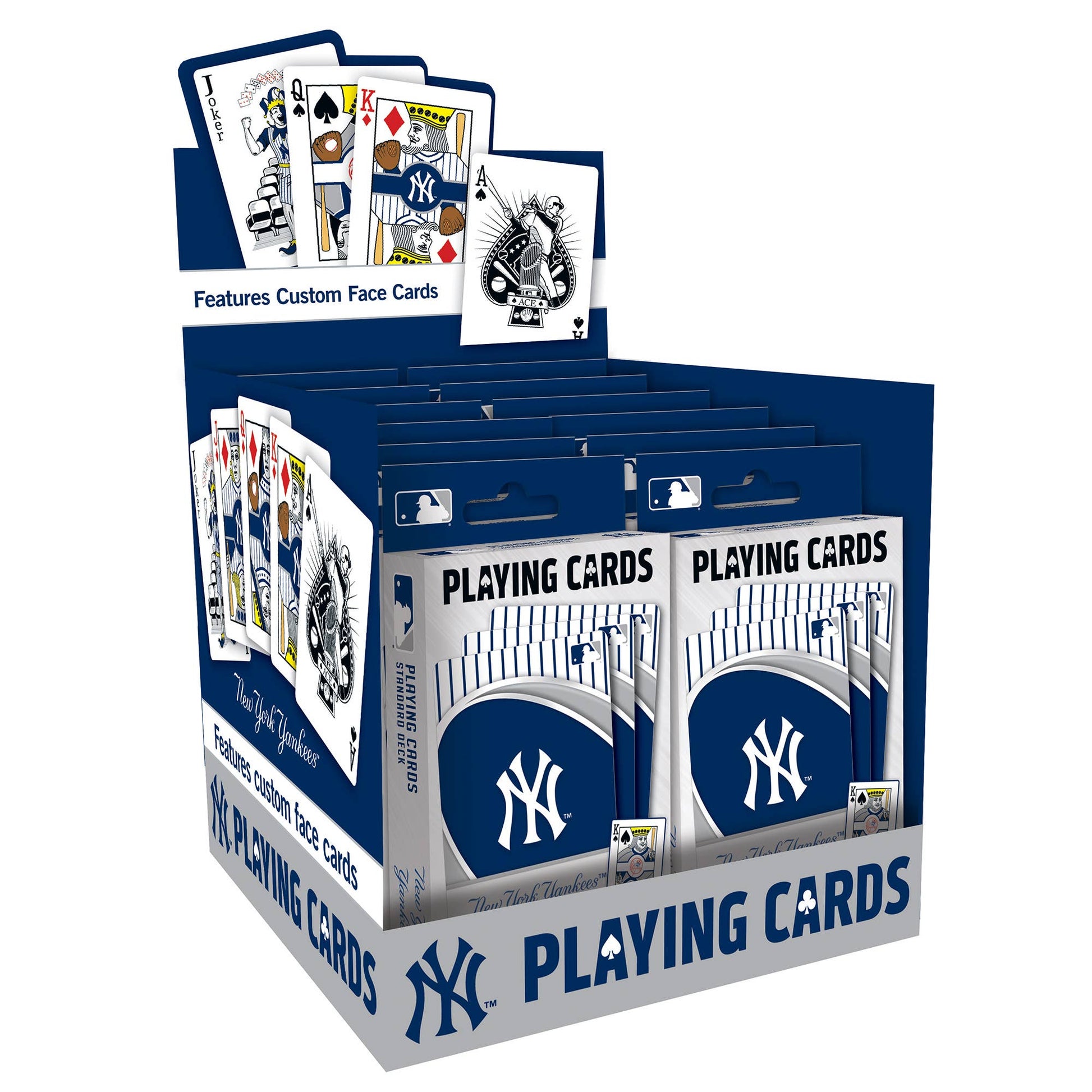 These officially licensed NY Yankees team playing cards are the perfect deck for all Yankees fans! Each standard deck contains 52 high quality cardstock playing cards and 2 jokers. All face cards and jokers have detailed, custom team designs. Support the Yankees with these officially licensed and approved playing cards. Perfect for all fans!